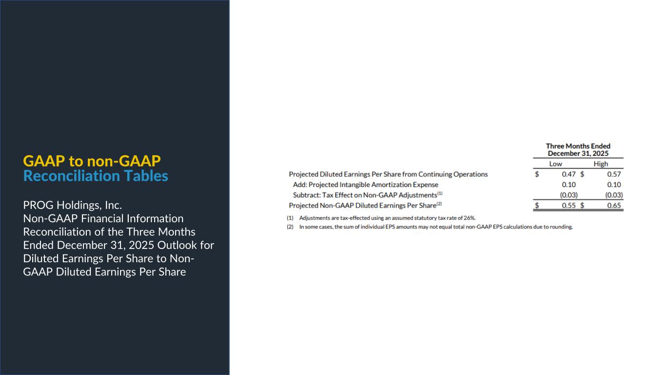 GAAP to non-GAAP Reconciliation Tables PROG Holdings, Inc. Non-GAAP Financial Information Reconciliation of the Three Months Ended December 31, 2025 Outlook for Diluted Earnings Per Share to Non- GAAP Diluted Earnings Per Share